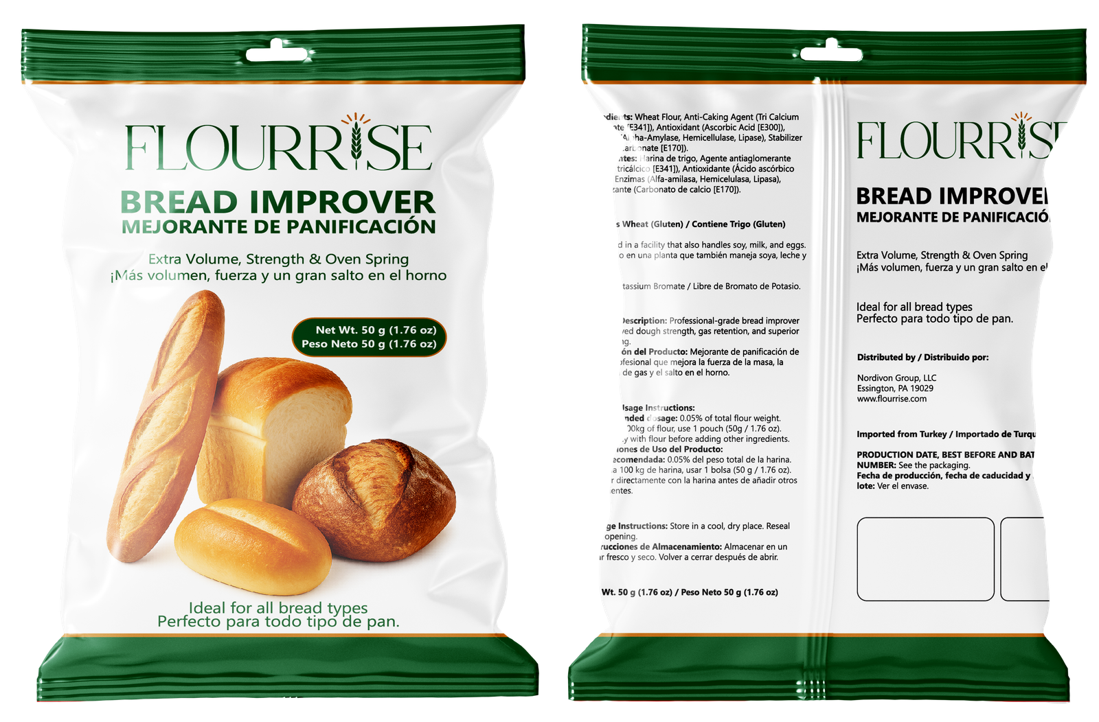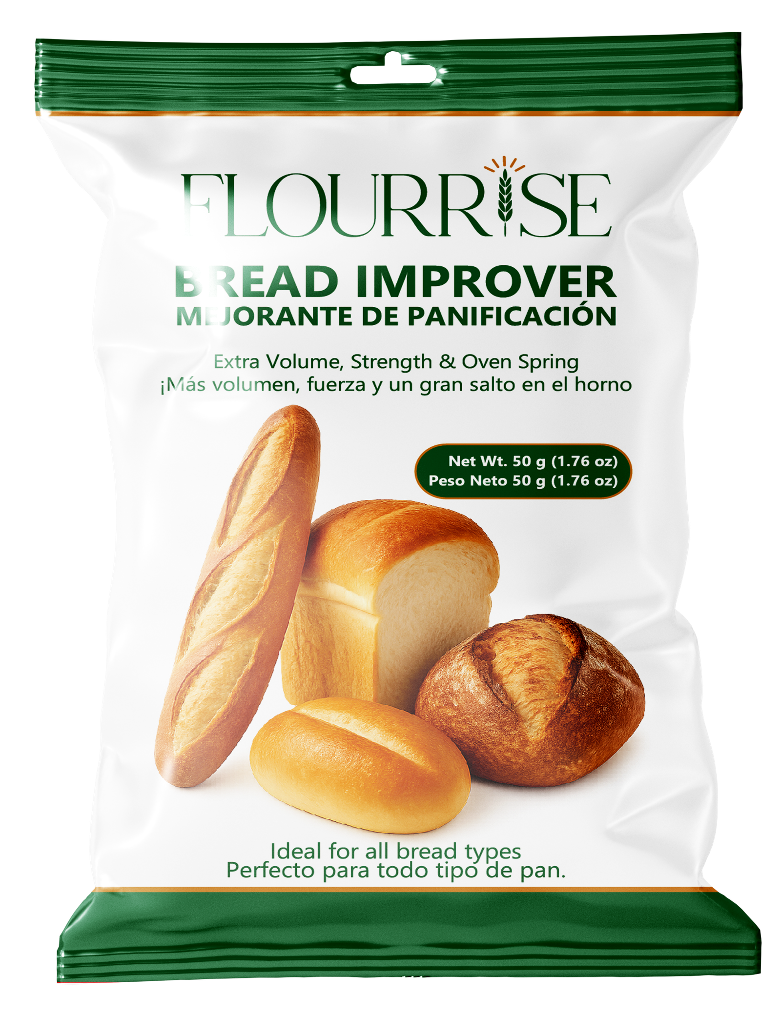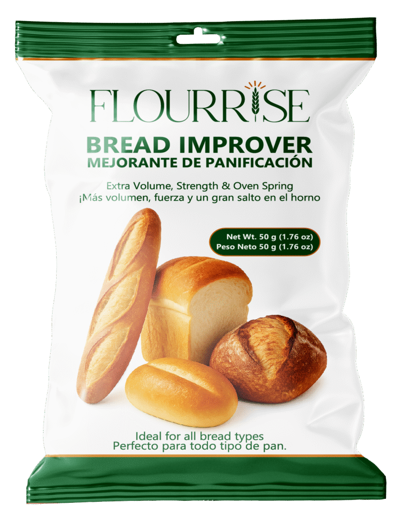 Extra Volume. Strength. Oven Spring. FLOURRISE is a next-generation bread improver that helps bakeries achieve consistent, high-quality results in every batch. With just one small pouch 1.76 oz (50 g) per 220 lb (100 kg) of flour, you’ll see immediate improvements in dough strength, crumb texture, and oven spring. For bread that looks as good as it tastes.